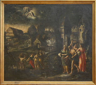 Slika je na osnovu navedenih istraživanja datirana u vrijeme manirizma ili ranog baroka, tj. nastala je vjerojatno na prijelazu 16. na 17. stoljeće. Pronađen je grafički predložak koji je poslužio za izradu slike, iz opusa slikara i crtača Maartena de Vosa (1532.-1603.). Ime autora slike je i dalje ostalo nepoznato, ali se pretpostavlja da je slika proizašla iz kruga antwerpenske radionice i humanističkog društva Maartena de Vosa ili nastala pod utjecajem tog kruga na majstora neke bliske regije.