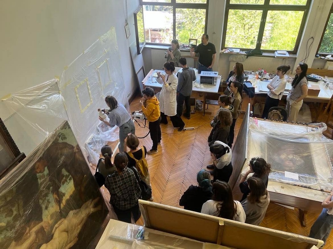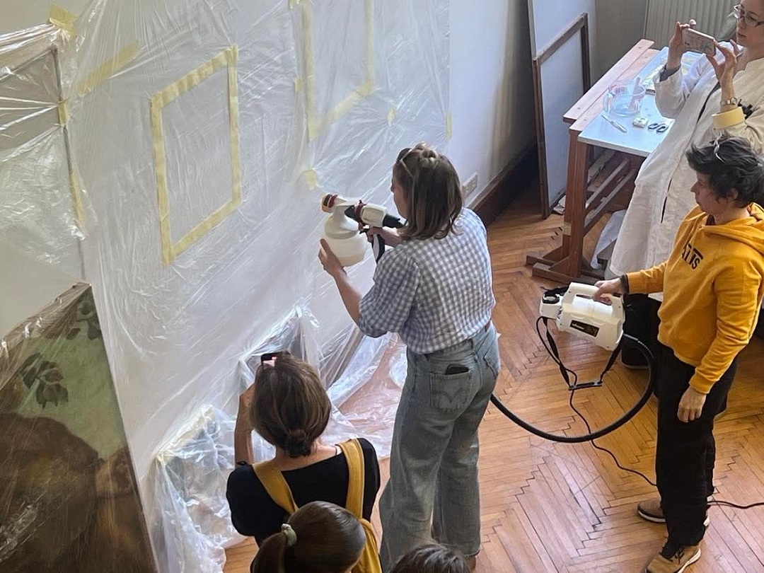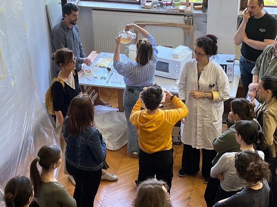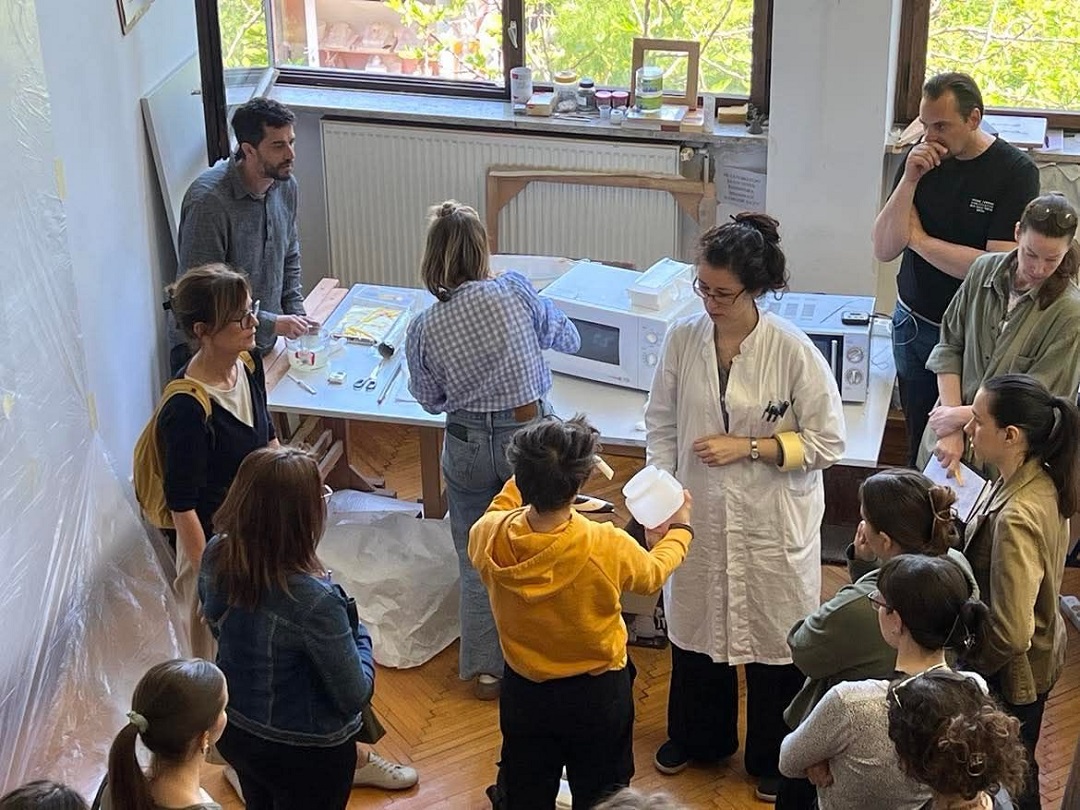 Marija je znanja prenijela s međunarodne radionice održane u Palermu (18. i 19. rujna 2024.), pod vodstvom konzervatorice-restauratorice Ambre Giordano, koja razvija novu tehniku primjene krutog gela u tekućem stanju – putem prskanja. Radionicu je organizirala prof. mr. art. Tamara Ukrainčik, a sudjelovali su studenti 3., 4. i 5. god. OKIRU R-S, te drugi djelatnici HRZ-a, naši alumni Jurica Milinković i Tomica Paradi, konzervatorica-restauratorica Nives Maksimović, te viša konzervatorica-restauratorica Ramona Mavar.