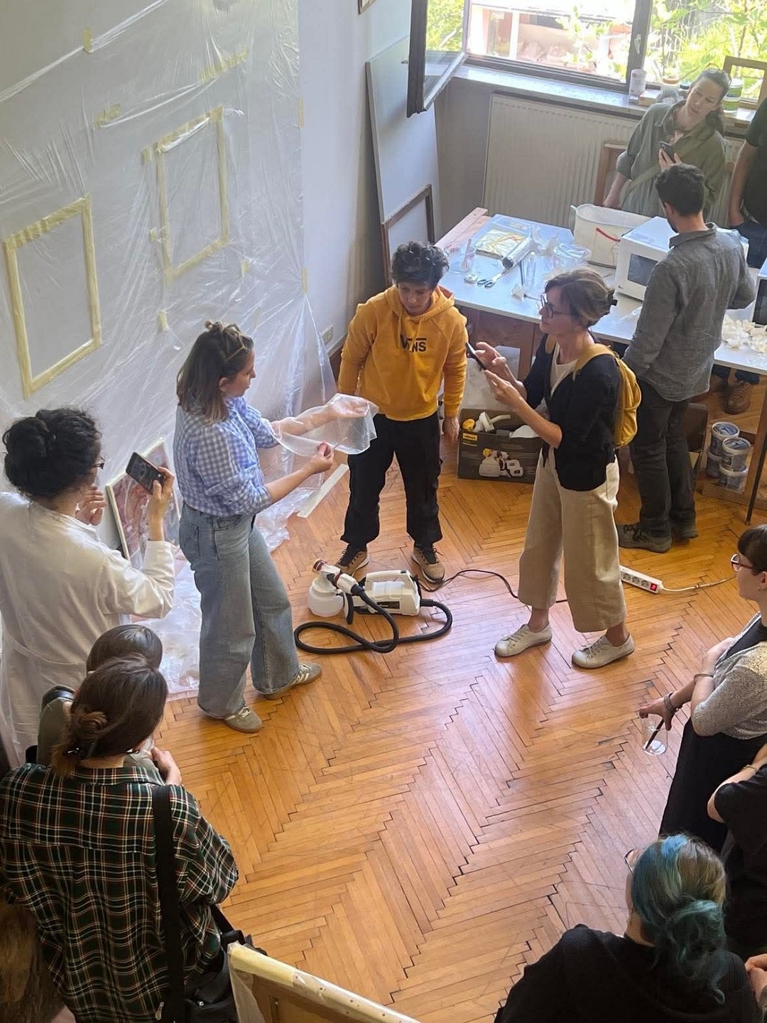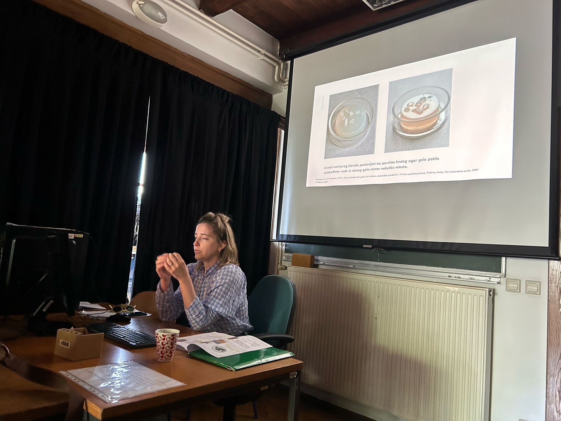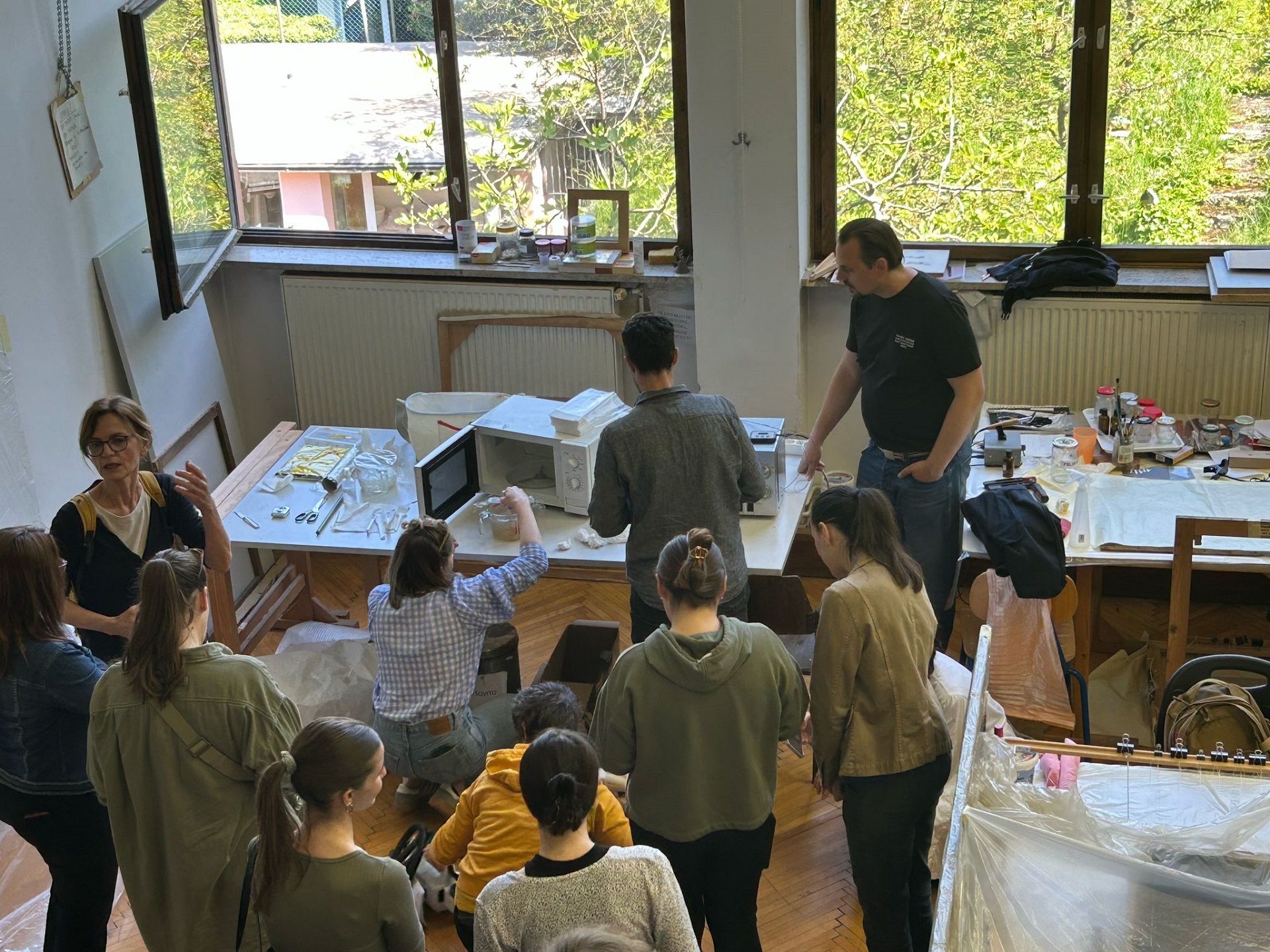 Marija je znanja prenijela s međunarodne radionice održane u Palermu (18. i 19. rujna 2024.), pod vodstvom konzervatorice-restauratorice Ambre Giordano, koja razvija novu tehniku primjene krutog gela u tekućem stanju – putem prskanja. Radionicu je organizirala prof. mr. art. Tamara Ukrainčik, a sudjelovali su studenti 3., 4. i 5. god. OKIRU R-S, te drugi djelatnici HRZ-a, naši alumni Jurica Milinković i Tomica Paradi, konzervatorica-restauratorica Nives Maksimović, te viša konzervatorica-restauratorica Ramona Mavar.